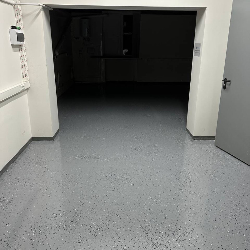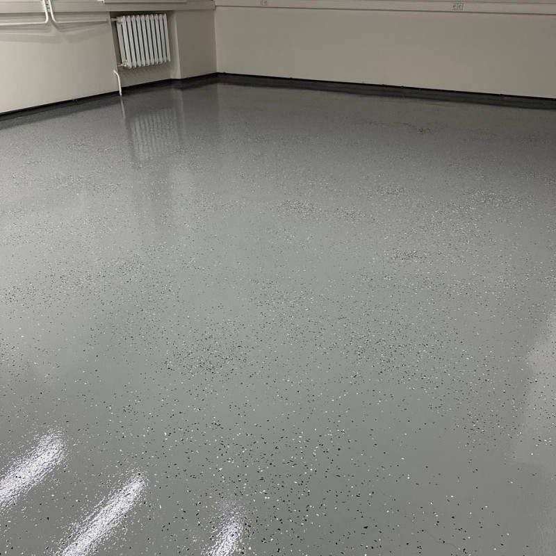 - Эпоксидная двухкомпонентная краска – проникает в структуру основания, заполняет микропоры и укрепляет пол. Создает износостойкое, ударопрочное покрытие. Обеспечивает превосходную адгезию, устойчивость к химическим веществам, долговечность и выдерживает регулярные пешеходные и автомобильные движения.